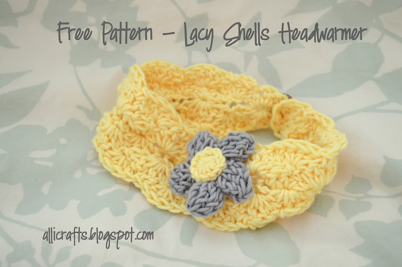 This version of the adult lacy shells headwarmer pattern is a little smaller, for toddlers and small kids. I decorated it with this flower.