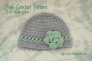 This little hat is perfect for Spring - cute but not too warm. I used the large no-sew rose, the open way, coordinated with the color of yarn I used for the last two rows of the hat.